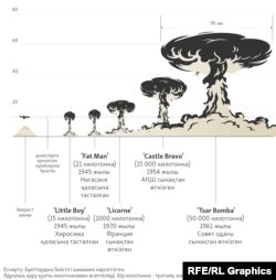 Ақпарат көзі: Азаттық, AFP, Қарулануды бақылау қауымдастығы, Атом архиві, Атом мұрасы қоры, The Barents Observer, BBC, Америкалық ғалымдар федерациясы, The Insider